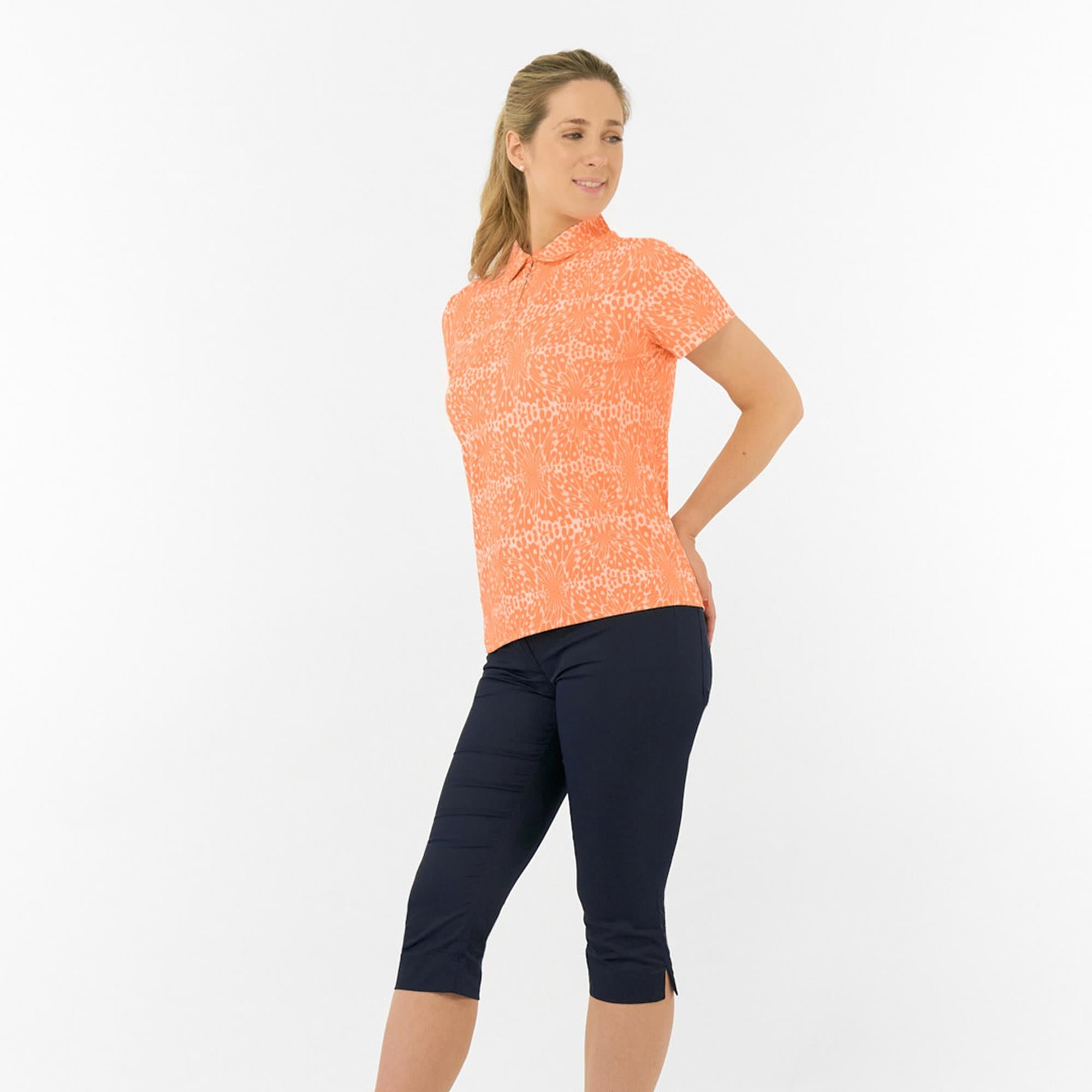 Pure Golf Amity Short Sleeve Ladies Golf Polo Shirt Cantaloupe Crescent