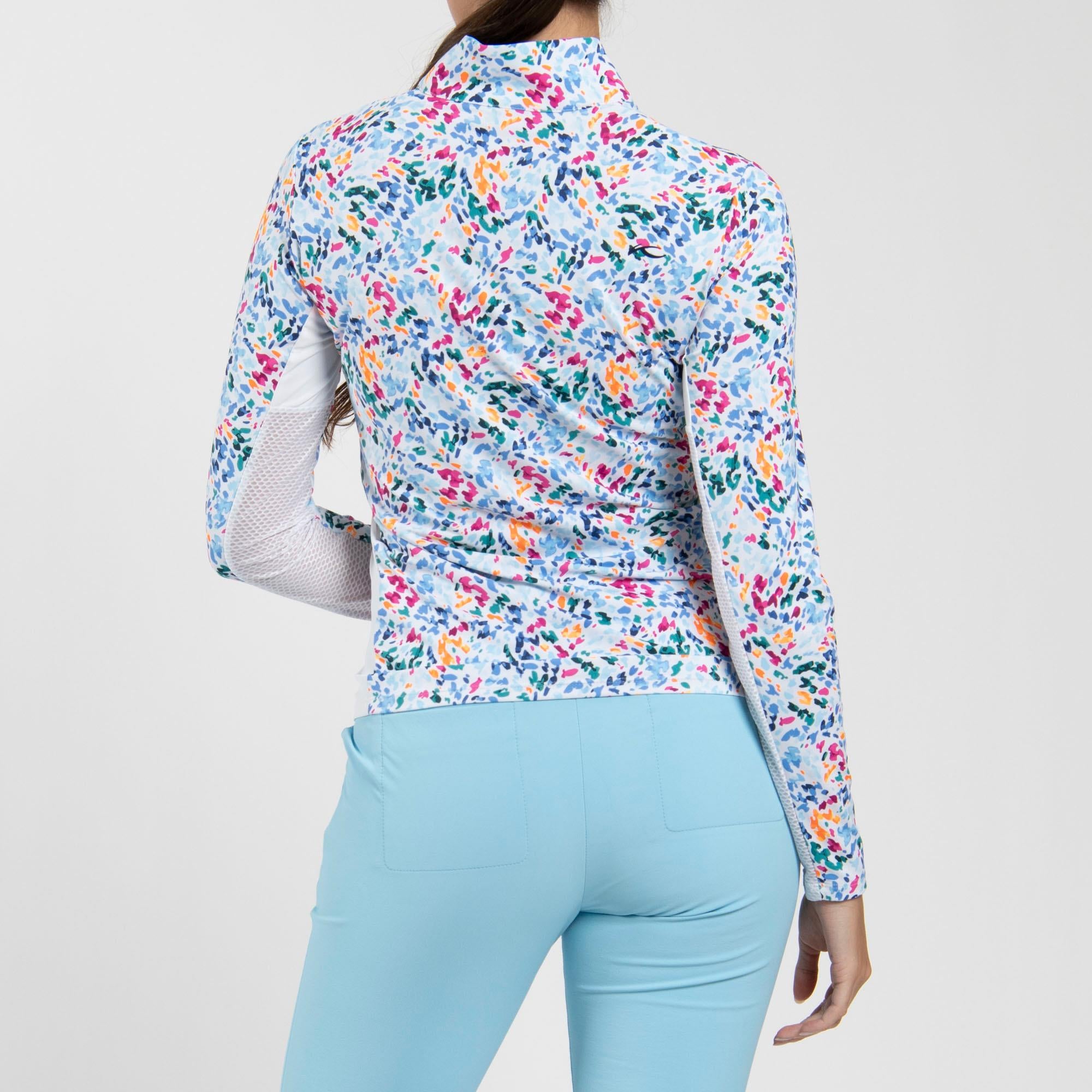 KJUS Sunshine Printed Half Zip Ladies Light Golf Mid Layer Splash White/Poolside