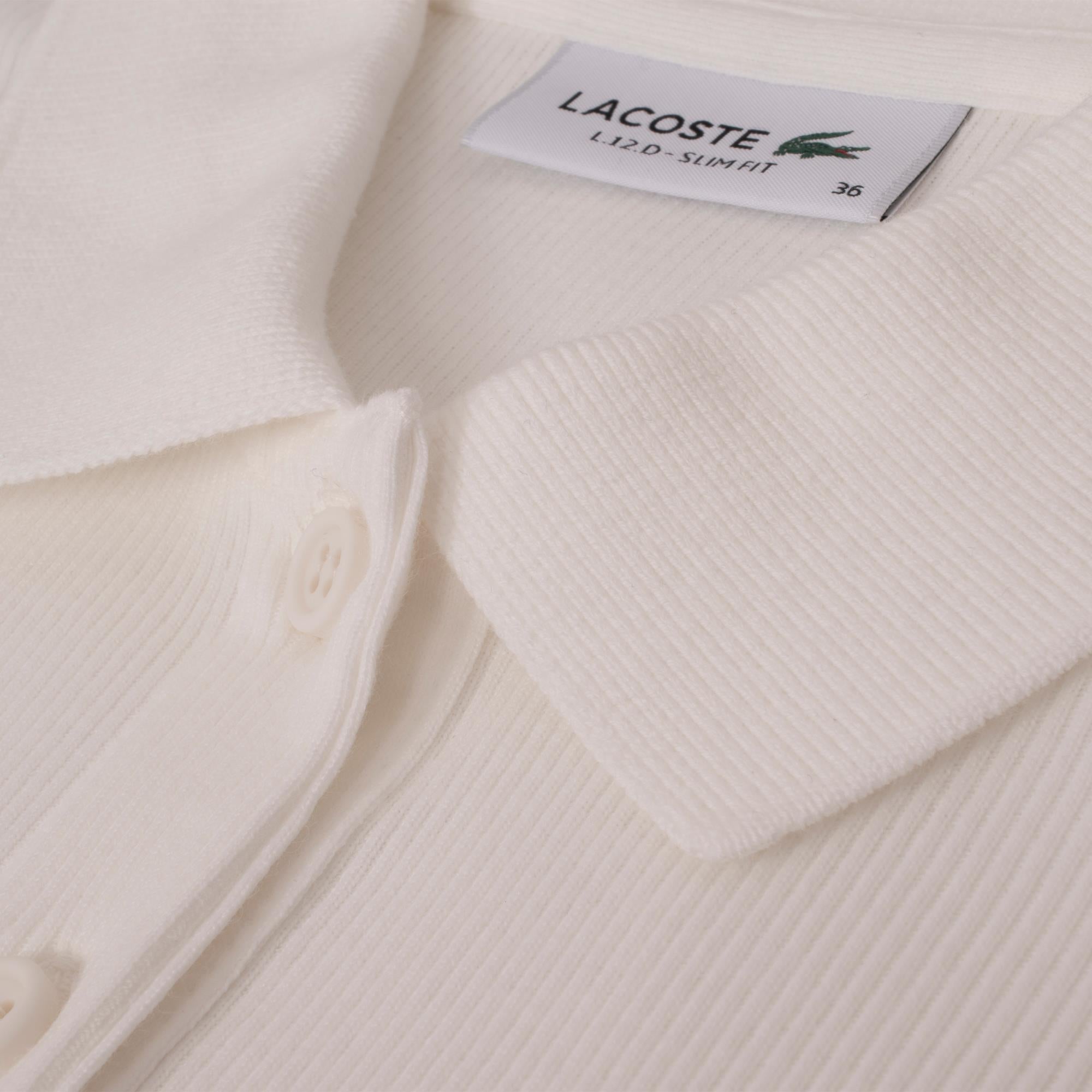 Ladies Lacoste L.12.D Slim Fit Ribbed Cotton Polo Shirt Flour