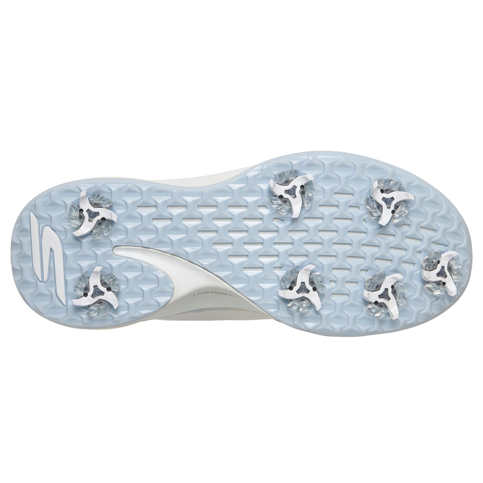 The smooth, soft, synthetic uppers are durable and easy to care for, offering a cushioned comfort insole and soft fabric lining. The Softspikes® ensure maximum grip and the Goga Matrix® outsole provides support and traction. A stylish ladies' golf shoe, it features side-stitching, lace-up front and a contrasting coloured sole trim.
