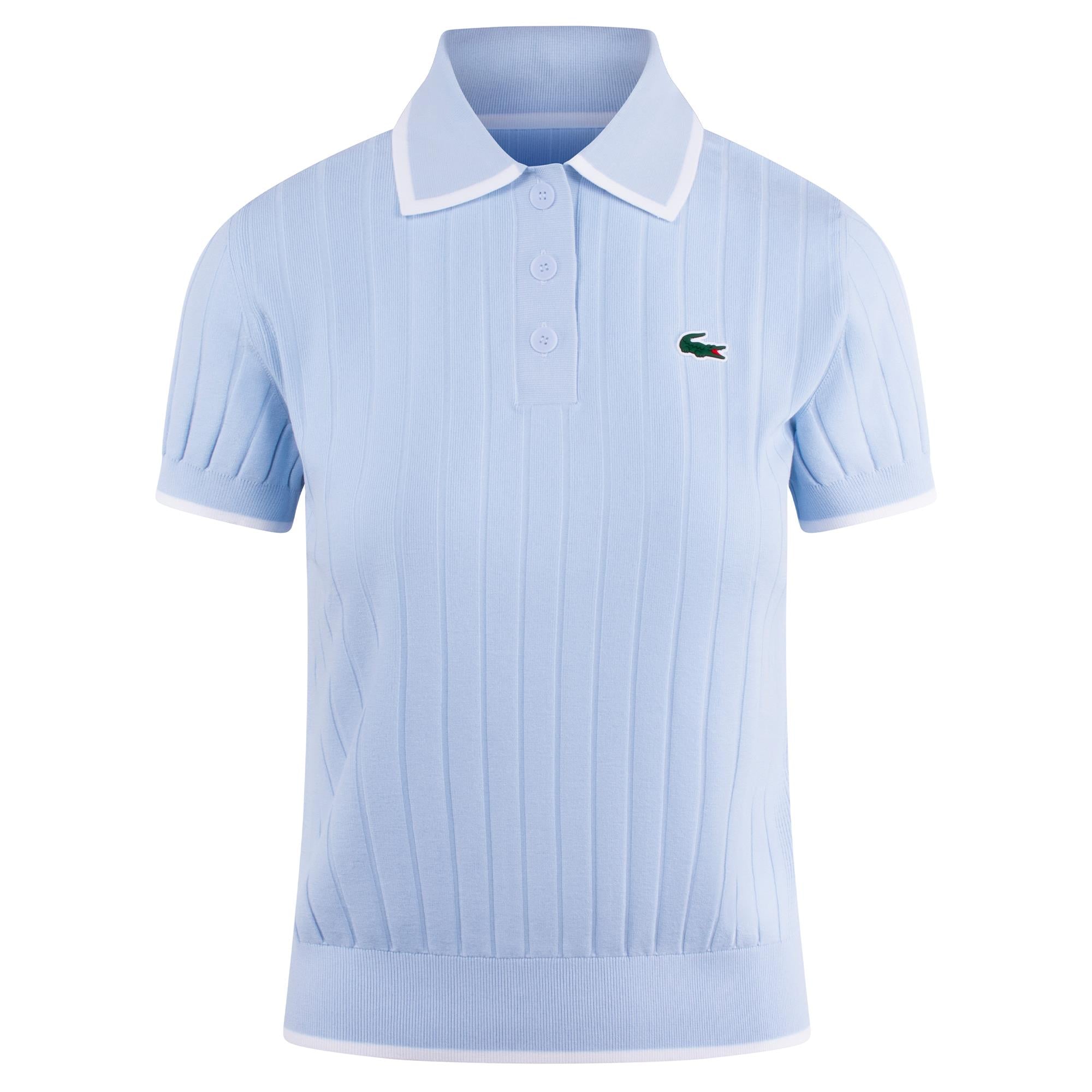 Ladies Lacoste Knitted Polo Sweater Blue